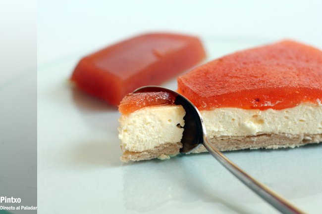 - Para el relleno, 250 ml de nata, 300 g de queso crema (tipo philadelphia), 100 g de azúcar, 4 yemas de huevo, 15 g de hojas de gelatina y dulce de membrillo suficiente para poner una capa encima.